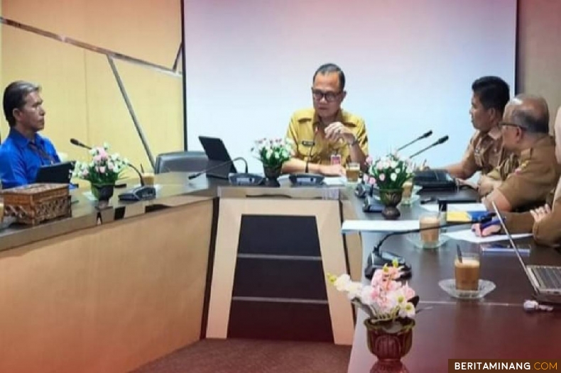 BUKITTINGGI - Pjs Wako Bukittinggi Hani S Rustam gelar rapat koordinasi ( Rakor) bersama Asisten II, Kadis PU, Kepala Bagian Perekonomian dan Dirut PDAM Tirta Jam Gadang dan jajarannya, membahas persoalan kebutuhan air warga kota Bukittinggi dari PDAM setempat.Rakor tersebut di gelar di BCC Bukittinggi, Selasa (08/10).