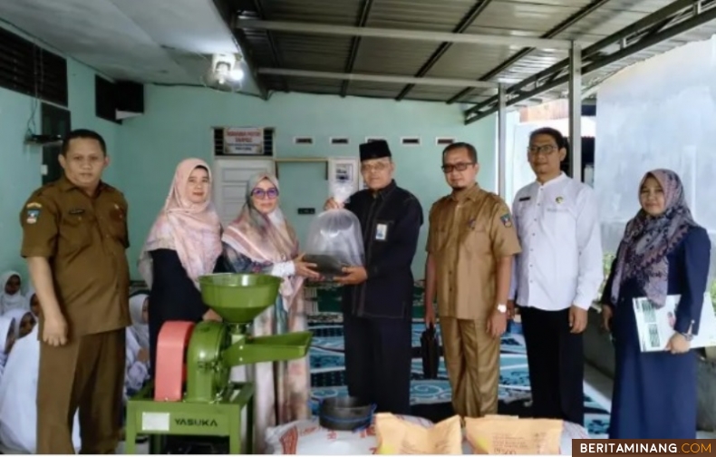 DHARMASRAYA - Badan Amil Zakat Nasional (Baznas) Kabupaten Dharmasraya melakukan penaburan benih ikan lele dalam program santripreneur di Pondok Pesantren (Ponpes) Pembangunan Pulau Punjung sekaligus menyerahkan bantuan berupa mesin untuk pakan ikan beserta bahan pakan.