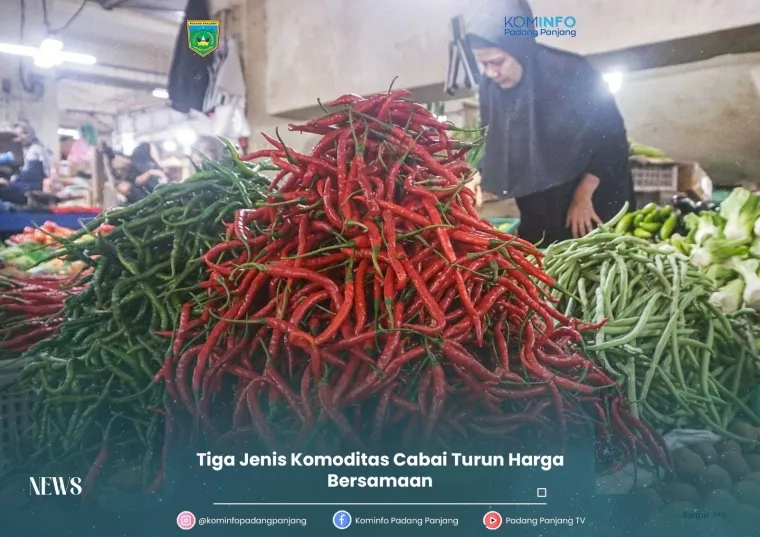 PADANG PANJANG - Tiga jenis komoditas cabai turun harga di Pasar Pusat Padang Panjang pada minggu ketiga Februari ini. Khusus cabai rawit dan cabai merah mengalami penurunan harga cukup signifikan.