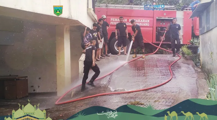 PADANG PANJANG - Usai pelaksanaan kurban, Satuan Polisi Pamong Praja dan Pemadam Kebakaran (Satpol PP dan Damkar) Kota Padang Panjang lakukan pembersihan di masjid dan musala, Sabtu (7/6/2025).