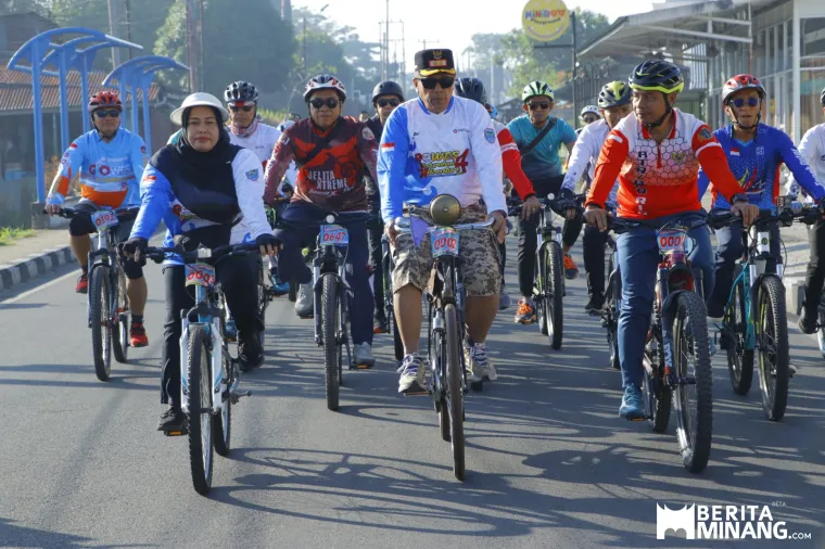 PAYAKUMBUH - Dengan sepeda ontelnya, Wakil Wali Kota Payakumbuh Elzadaswarman ikut memeriahkan Gowes Silaturahmi 4 yang memulai start di Kawasan Gelanggang Pacu Kuda, Minggu (22/06/2025).