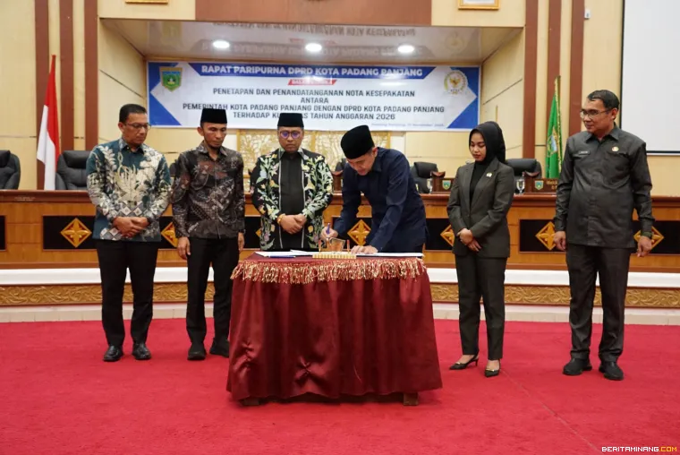 PADANG PANJANG — Dewan Perwakilan Rakyat Daerah (DPRD) Kota Padang Panjang kembali menegaskan peran strategisnya dalam mengawal arah pembangunan daerah. Melalui penandatanganan Nota Kesepakatan Kebijakan Umum Anggaran dan Prioritas Plafon Anggaran Sementara (KUA-PPAS) Tahun Anggaran 2026 bersama Pemerintah Kota (Pemko), DPRD menunjukkan komitmen kuat dalam mewujudkan tata kelola pemerintahan yang kolaboratif, transparan, dan berpihak pada kepentingan rakyat.