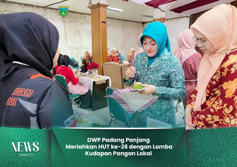 PADANG PANJANG - Memeriahkan Hari Ulang Tahun (HUT) Dharma Wanita Persatuan (DWP) ke 26, DWP Kota Padang Panjang menggelar Lomba Memasak Kudapan Bahan Pangan Lokal dan Bazar UMKM, di Gedung M Syafei, Senin (24/11/2025).