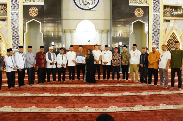 Sebanyak Rp545.731.000 disalurkan kepada 282 mustahik dalam berbagai program pemberdayaan, Jumat (20/2/2026), di Masjid Agung Manarul 'Ilmi Islamic Centre.