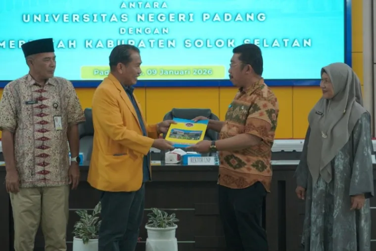 SOLOK SELATAN - Pemerintah Kabupaten Solok Selatan secara resmi menerima mahasiswa Kuliah Kerja Nyata (KKN) dari Universitas Negeri Padang dalam kegiatan serah terima yang digelar di Kantor Bupati Solok Selatan, Jum’at (9/1/2026). Kegiatan ini menandai dimulainya pelaksanaan KKN Reguler UNP di wilayah tersebut, yang untuk pertama kalinya dilaksanakan di Kabupaten Solok Selatan.