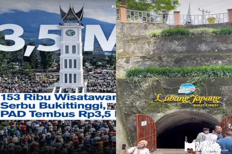 BUKITTINGGI - Tercatat selama libur Idul Fitri 1447 H pengunjung yang datang ke Bukittinggi sebagai wisatawan membludak. Dari 21- 29 Maret 2026 jumlah pengunjung tercatat melalui obyek wisata yang berbayar mencapai 153.336 orang, sehingga menghasilkan pemasukan ke PAD Pemko Bukittinggi Rp 3,5 Miliyar.