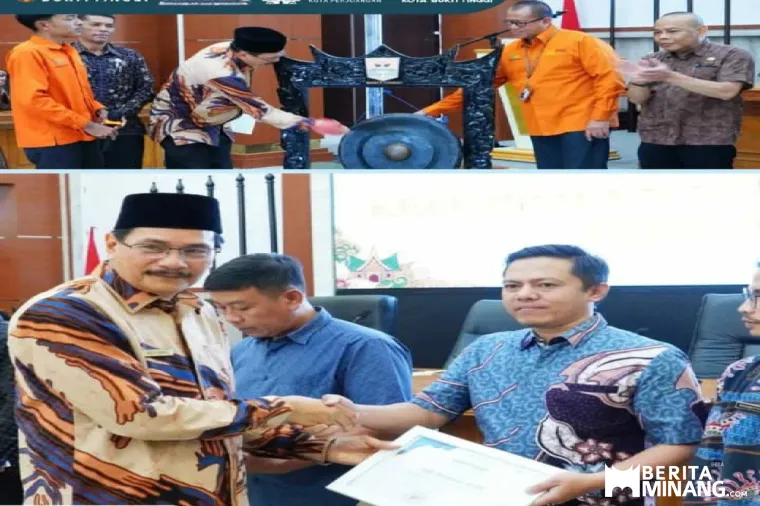 BUKITTINGGI - Pemko dan BPS Bukittinggi perkuat satu data Indonesia melalui pembinaan dan pencanangan tiga Desa/Kelurahan di Kota Bukittinggi sebagai Kelurahan yang cinta statistik ( Cantik) oleh Walikota Bukittinggi diwakili Stap Ahli Bidang Administrasi dan Keuangan, Melfi Abra, bersama Badan Pusat Statistik (BPS)di Aula Balaikota, Kamis (16/04/2026).