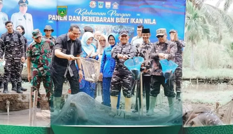 PARIAMAN - Wali Kota Padang Panjang Hendri Arnis mengikuti panen raya ikan nila bersama Komando Daerah (Kodaeral) II Padang dan Wali Kota Pariaman Yota Balad di Desa Kampung Kandang, Kecamatan Pariaman Timur, Kamis (23/4/2026).