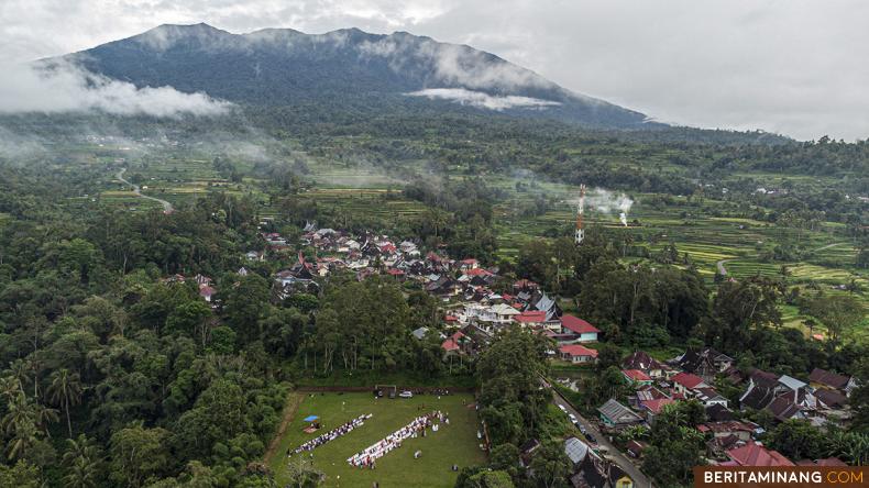 Foto udara umat Islam melaksanakan sholat Idul Adha 1444 H di Nagari Pariangan, Tanah Datar, Sumbar, Rabu (28/6/2023). Sebagian umat Islam di Sumatera Barat melaksanakan sholat Idul Adha 1444 H hari ini Rabu 28 Juni 2023. (Beritaminang/Adi Prima)