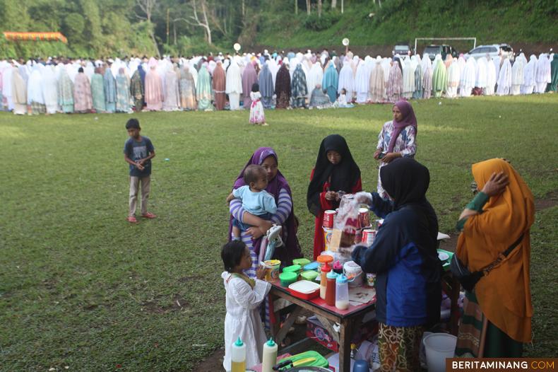 Pedagang melayani pembeli ketika pelaksanaan sholat Idul Adha 1444 H di Nagari Pariangan, Tanah Datar, Sumbar, Rabu (28/6/2023). Sebagian umat Islam di Sumatera Barat melaksanakan sholat Idul Adha 1444 H hari ini Rabu 28 Juni 2023. (Beritaminang/Adi Prima)