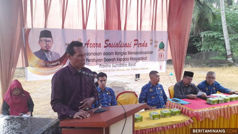 SINTOGA - Pemerintah Daerah Provisi Sumbar terus melakukan berbagai terobosan bagi warganya guna memberikan kemudahan dalam membayar pajak daerah. Sehingga, warga diharapkan bisa patuh dalam membayar pajak. Penegasan itu disampaikan Anggota DPRD Sumbar Jasma Juni (JJ) Dt Gadang, saat memberikan sambutan dalam kegiataan Sosialisasi Perda No. 04 Tahun 2018 Tentang Pajak Daerah di Kecamatan Sintuak Tobo Gadang (Sintoga) Kabupaten Padang Pariaman, Sumbar yang dipusatkan di Nagari Tobo Gadang, Senin (17/7/2023).