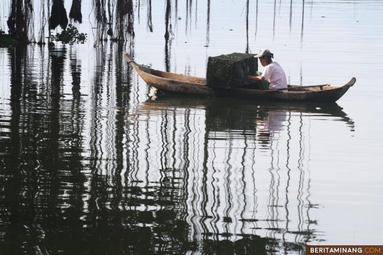 NELAYAN DANAU MANINJAU - Warga mencari Pensi (kerang danau) di Danau Maninjau, Kabupaten Agam, Sumatera Barat. Selain diolah menjadi makanan, satu ember pensi berukuran 25 liter di jual Rp 50.000 kepada pengepul. Foto Adi Prima