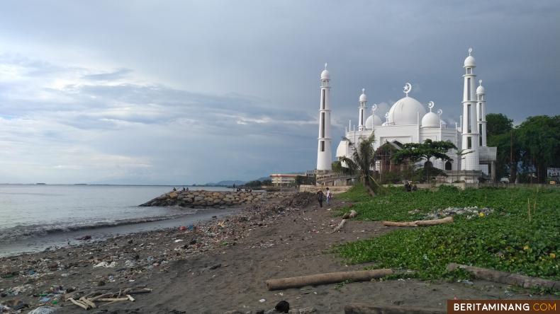 TERGANGGU SAMPAH MENUMPUK - Sampah masih menumpuk di Pantai Padang. Minggu sore, 16 Februari 2020, tumpukan sampah yang terhempas ke Pantai Padang tampak tidak dibersihkan, padahal tak jauh tampak keberadaan Mesjid Al Hakim yang sedang dibangun Pemko Padang. Foto Vajrel Tri Ananda