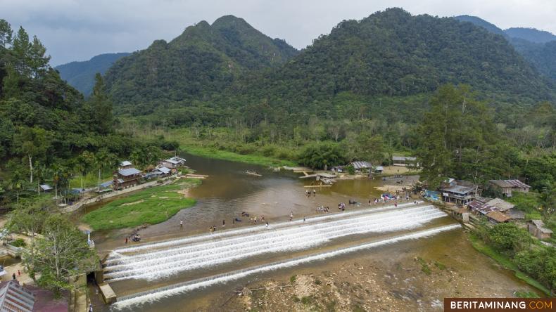 Foto udara wisatawan memadati objek wisata Kapalo Banda Taram, Nagari Taram, Kabupaten Limapuluh Kota, Sumbar, Sabtu (9/12/2023). Pilot Project OJK dan Bank Nagari Sayriah untuk Implementasi Generic Model Ekosistem Keuangan Inklusif (EKI) di Nagari Taram selain untuk mengembangkan desa dan meningkatkan kesejahteraan masyarakat juga bertujuan untuk memberi edukasi kepada masyarakat untuk bisa memilih dan memanfaatkan produk dan layanan jasa keuangan yang sesuai kebutuhan. (AP/Beritaminang)