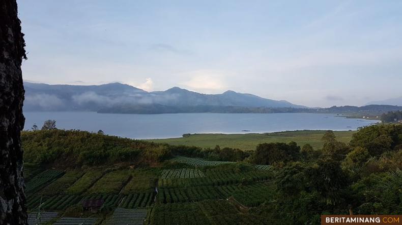 DANAU DIATAS - Kawasan Danau Kembar Alahan Panjang Kabupaten Solok terdiri dari dua kawasan danau, yakni Danau Diatas dan Danan Dibawah. Kedunya merupakan lukisan alam yang sudah ada sejak lama. Beginilah pemandangan danau bila dilihat dari Sudut Sendu Danau Diatas. Foto Sutomo Paguci