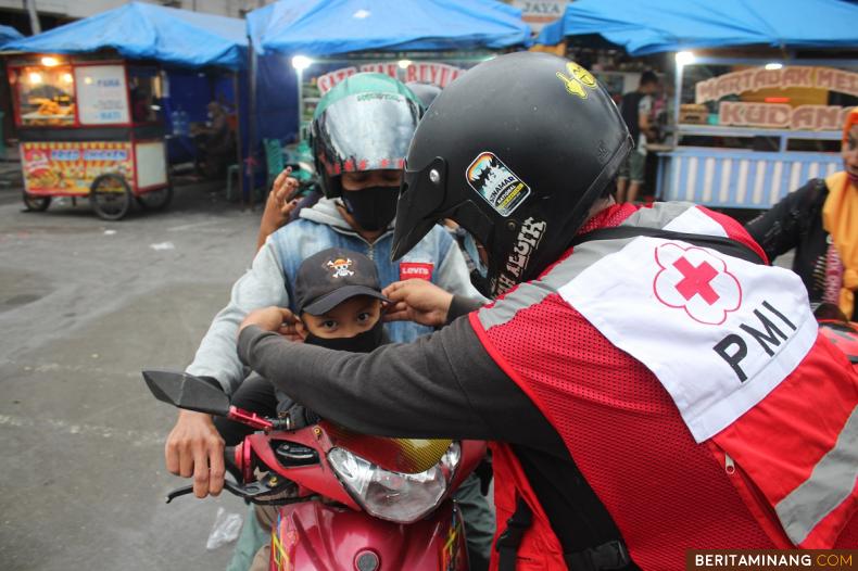 Relawan membagikan masker kepada warga untuk menyaring abu vulkanik setelah letusan Gunung Marapi di Batusangkar, Kabupaten Tanah Datar, Sumatera Barat, Senin (5/2/2024). Gunung berapi yang terletak di provinsi Sumatera Barat ini belum berhenti meletus sejak letusan besar yang menewaskan 24 orang pada tanggal 3 Desember 2023. (Beritaminang/AP)