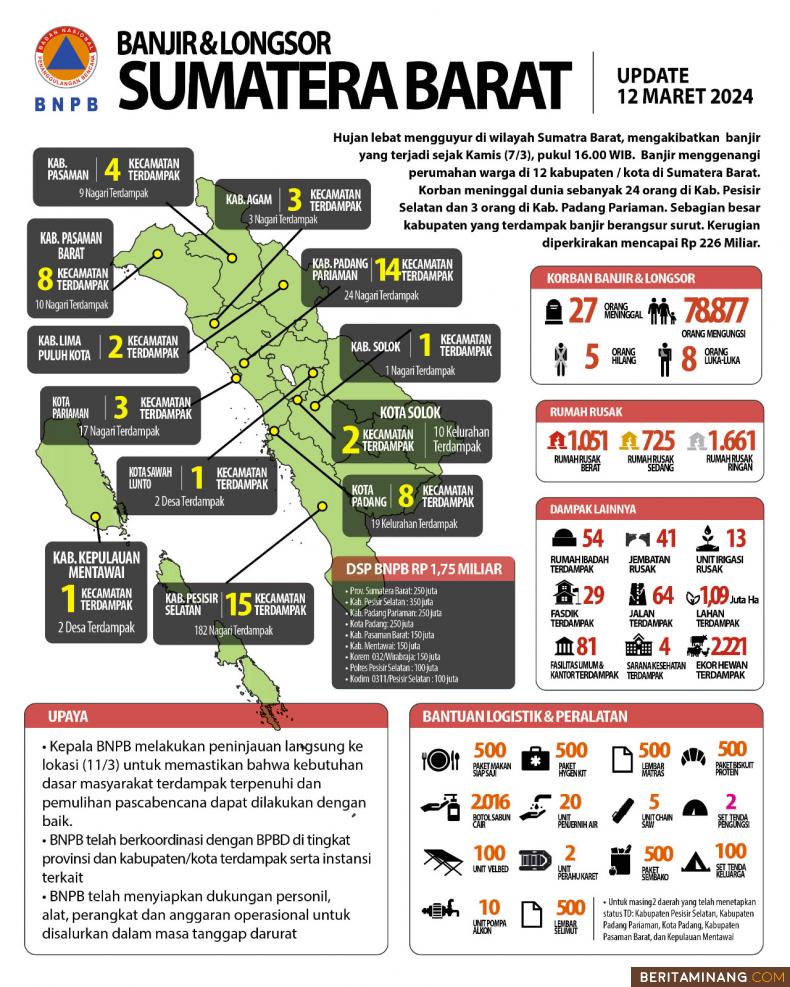 Home Foto Update Data Terakhir Banjir dan Longsor di Sumbar Hingga 12 Maret 2024 Update Data Terakhir Banjir dan Longsor di Sumbar Hingga 12 Maret 2024 Marjeni Rokcalva Minggu, 22 Desember 2024, 08:09 WIB × Update Data Terakhir Banjir dan Longsor di Sumbar Hingga 12 Maret 2024 Bagikan foto Update Data Terakhir Banjir dan Longsor di Sumbar Hingga 12 Maret 2024 Update Data Terakhir Banjir dan Longsor di Sumbar Hingga 12 Maret 2024. Sumber: BNPB Editor : Bagikan Foto Lainnya Bebas Biaya Transaksi Dengan Bale BTN Pacu Jawi Akhir Tahun 2025 Pupuk Untuk Maksimalkan Pertumbuhan Tanaman Kakao Pupuk Bersubsidi Optimaslisasi Hasil Pertanian Sayur dan Buah Sampah Banjir Di Danau Singkarak Sampah Banjir Dan Tanah Longsor Di Danau Singkarak