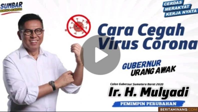 CARA CEGAH VIRUS CORONA - Serangan Virus Corona (Convid-19) yang melanda dunia dan Indonesia, hendaknya dihadapi dengan pola hidup bersih. Masyarakat tidak perlu panik, tetapi selalu waspada dan selalu berprilaku hidup bersih-bersih, bersih anggota tubuh, terutama tangan dan bersih lingkungan. Calon Gubernur Sumbar Ir. H. Mulyadi yang selalu berkunjung ke pelosok nagari, mengajak masyarakat Sumbar mengikuti anjuran petugas kesehatan, yaitu sering sering mencuci tangan dengan sabun dan air mengalir. Atau mencuci tangan dengan cairan antiseptik atau hand sanitizer, terlebih sepulang dari tempat-tempat umum. Ist