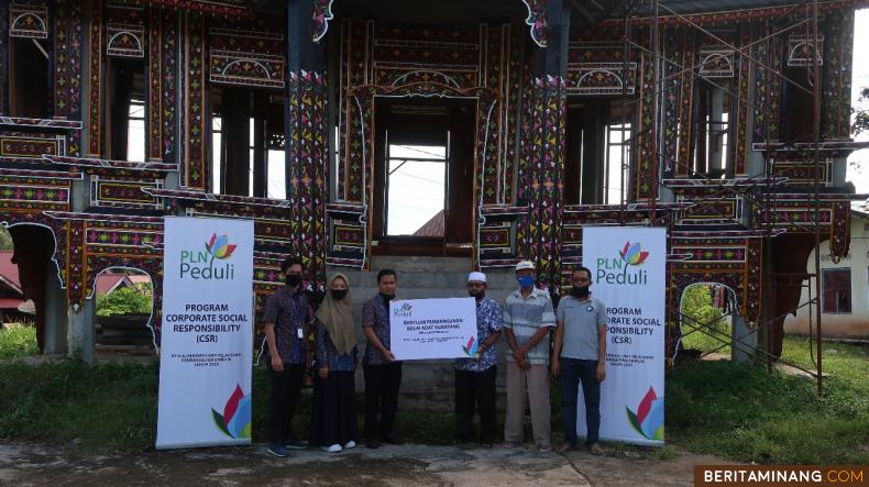 BANGUN KAN SIJANTANG - PT PLN Pembangkit Ombilin menyerahkan bantuan dana CSR itu sejumlag berjumlah Rp 100 juta untuk penyelesaian Kantor Balai Adat KAN Sijantang, Sawahlunto, Sumbar dan Rp 75 juta untuk program lanjutan pengembangan budidaya singkong kelompok tani Parigi Jaya Desa Sijantang Koto, yang diserahkanGeneral Manager PT PLN UPK Ombilin Daryanto melalui Manager Bagian KSA PLN UPK Ombilin, Ahmadikepada KetuaKAN H.Adi Muaris Khatib Kayo, danKetua Poktan Tani Parigi Jayadiwakili Kepala Desa SijantangKotoH. Delfi Makmurdi Balai Adat, Jumat (24/4/2020). Foto Iyos