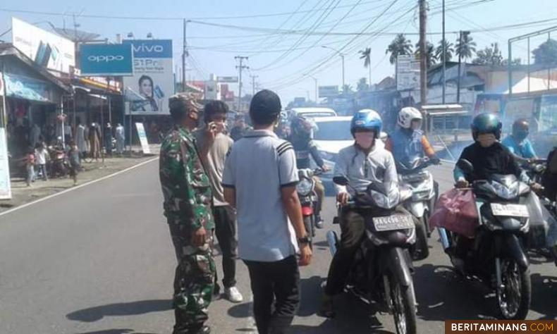 PUTUS RANTAI CORONA - Antisipasi serta mencegah penyebaran Virus Corona, Pemerintah Nagari Lingkungan Aua, Kecamatan Pasaman, Pasaman Barat, Sumbar adakan aksi bagi-bagi masker ke warga guna mengantisipasi penyebaran Virus Corona (Covid-19) serta diiringi kegiatan menyosialisasikan ke warga agar tetap di rumah dan menjalankan Pola hidup sehat. Juga dilakukan penyemprotan desinfektan ke sejumlah fasilitas umum, seperti kantor pemerintah nagari, pasar simpang empat dan terminal di Nagaro Lingkuang Aua.