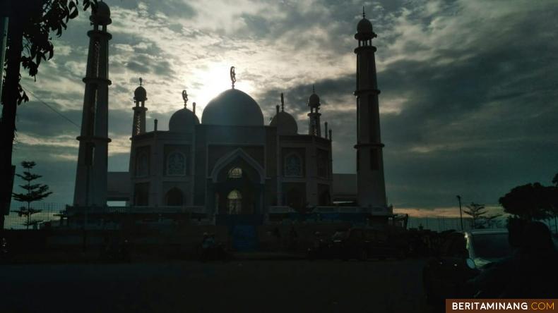 Editor : Berita MinangPancaran Mantari Senja Menerpa Masjid Al Hakim Pantai Padang