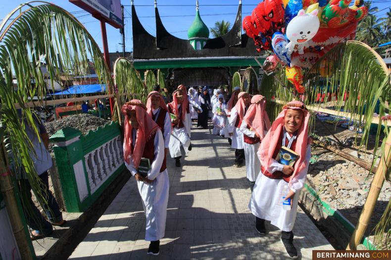 Perayaan Khatam Al-Quran anak-anak TPA Masjid Al-Amin, Limo Kaum, Batusangkar, Sumbar, Minggu (09/08/2020). 29 orang putra-putri asal nagari Limo Kaum merayakan khatam Al-Quran tahun 2020 ini. (Beritaminang/Adi Prima).
