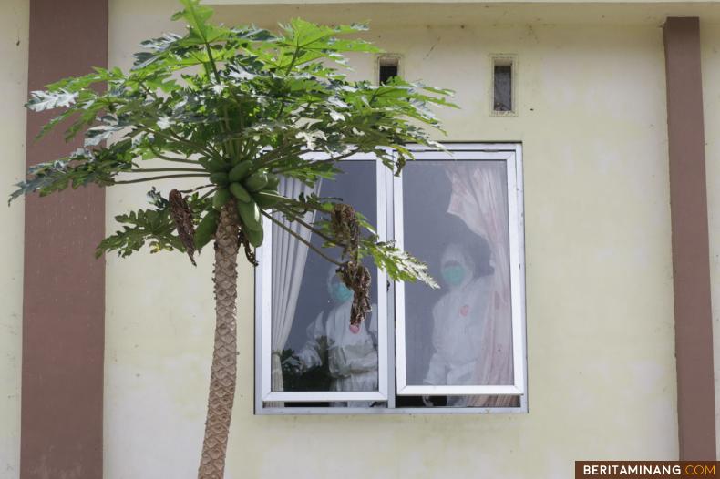 Memakai alat pelindung diri lengkap anggota BPBD Padang Panjang melakukan penyemprotan disinfektan di asrama SMAN 1 Sumatera Barat, Padang Panjang, Sumbar, Sabtu (03/4/2021). Penyemprotan disinfektan dilakukan untuk mencegah penyebaran virus COVID-19 di lingkungan sekolah usai ditemukan 58 orang siswa-siswi SMAN 1 Sumbar postif COVID-19 akhir Maret lalu. (Beritaminang/Adi Prima).