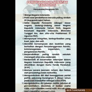 Buruan! Ada Penerimaan Pengawas TPS Pemilu 2024 LENSA SUMATERA BARAT Minggu, 22 Desember 2024, 08:09 WIB